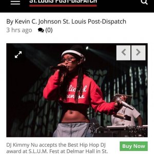 DJ Kimmy Nu is one of St. Louis' hottest rising talents, at 21, she's already a member 24Scientist, a group of DJ's under the leadership of DJ Charlie Chan. She's making a name for herself in this “male dominating field’ in Hip-Hop, R&B, Pop, Neo-Soul and House music. This rising star discovered her love of music and gift from God as a young teen listening and watching her father (DJ P-Smurf aka DJ Legit). Opening up for many artist such as Dj Drama, Dj Spinderella, Ty Dolla Sign Kevin Gates, Lil Durk, Yung Joc, Vince Staples, Teyana Taylor, Tink, Dreezy, Young Dolph, and may more artist. I'm been djing for about 11 years. Just received #TheBestHipHopDj award in my city underground scene #Slumfest and will continue to dj all types of events including my own and go on tours.